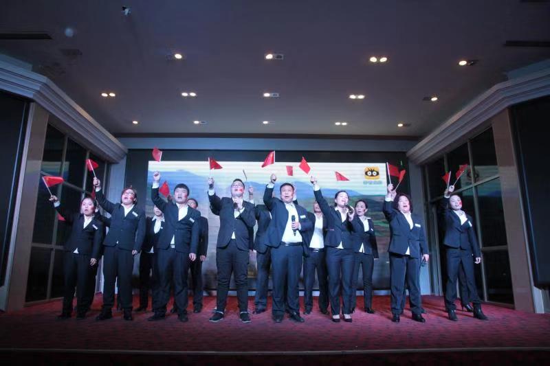 晚會(huì)最后,潔霸公司總經(jīng)理程晉軍和各單位、部門負(fù)責(zé)人共同唱響“大中國(guó)”。