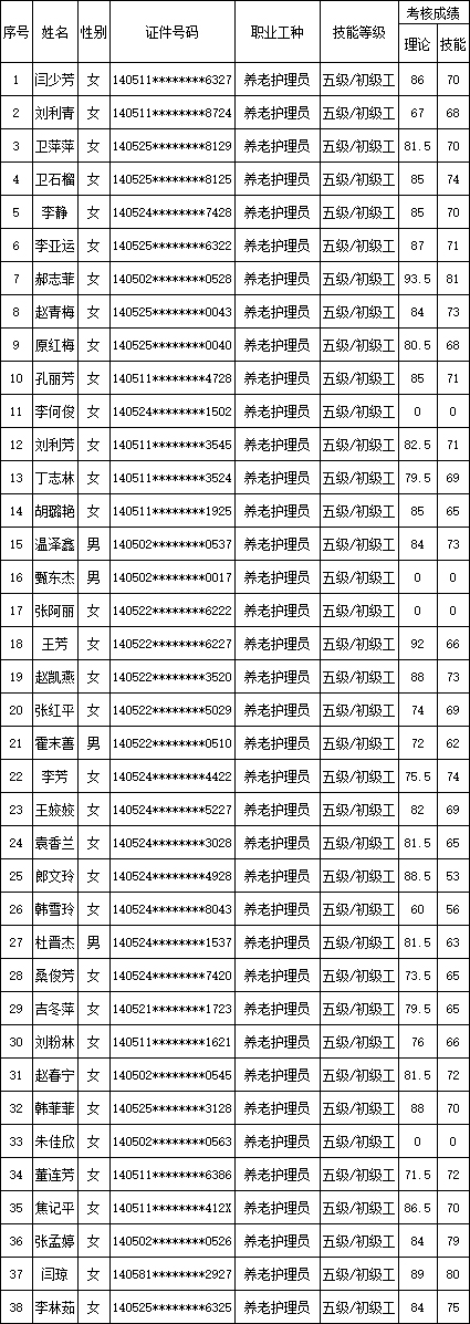 山西潔霸清潔服務(wù)集團股份有限公司職業(yè)技能等級認定中心現(xiàn)將2025年11月9日認定人員成績公示如下: